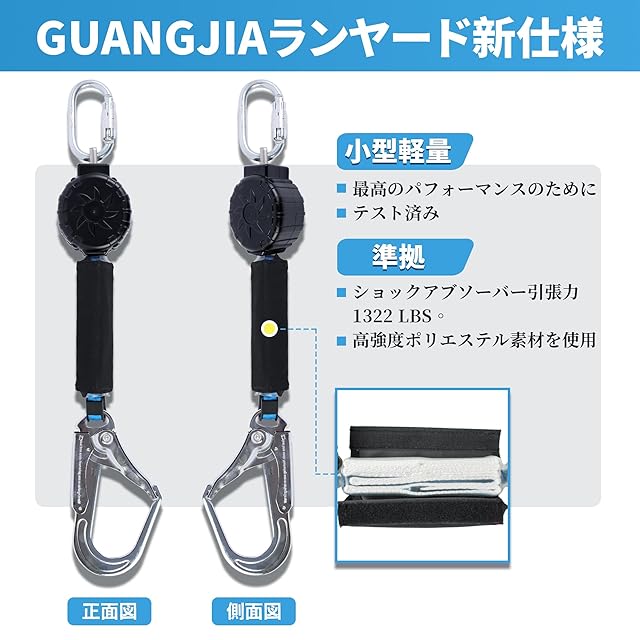 [GUANGJIA] ランヤード 巻き取り式ランヤード 安全帯 墜落制止用器具ランヤード ロック装置付き巻取器タイプ1ランヤード 型 フルハーネス型/胴ベルト型兼用 対応 軽量フルハーネス