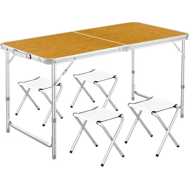MINODEER【日本企業】アウトドア テーブル キャンプ テーブル 折りたたみ 高さ3段階調整可能 120×60×(55-62-70)cm ピクニック レジャー キャンプ用 LK (セット, 竹)