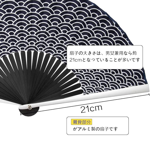 [SENMAN] 扇子 メンズ アルミ 合金扇子 扇子 アルミ メンズ 金属 高級綿扇子 紳士扇子 おしゃれ ウサギ扇子袋 贈り物 プレゼント 父の日 花火大会用 海外 お土産 浴衣 着物 和小物 夏の祭り 歌舞伎小物 猛暑対策 青海波(21cm)