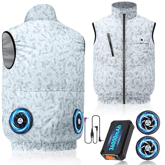 [Sumeriy] 空調作業服 ファン・バッテリー付き 36000mAh大容量 バッテリー付き& 40V高出力 ファン付き作業服 大風量 4段階風量調節 ファン付きベスト 静音 吸汗速乾 軽量 UVカット 熱中症対策 ファンバッテリーセット PSE安全認証 男女兼用 釣り キャンプ 猛暑対策 戸外 建築現場 (XL, ホワイト)
