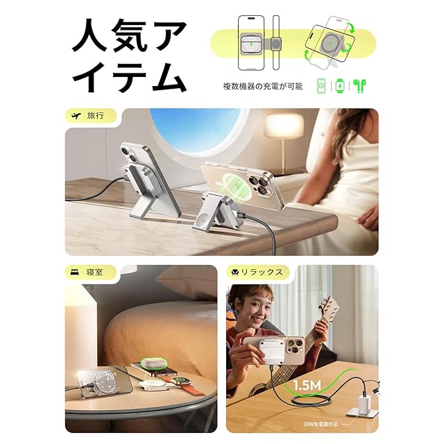 感謝祭 マグセーフ充電器 mag safe 充電器 マグセーフ magsafe充電器 スタンド magsafe 充電スタンド 充電スタンド iphone 充電スタンド おくだけ充電 iphone スマホスタンド 充電iphone アップルウォッチ 同時充電 スマホ充電スタンド アップル 充電器 iphone apple watch 同時充電 iphone 置くだけ充電器,apple watch series 10,ultra 2, SE私たちは 6 ヶ月間の品質サービスを提供します。もしあなたの腕時計に充電できないなどの問題があれば、いつでも私たちにご連絡ください(注意:充電中の軽度の発熱は正常です。スマホケースの厚い場合は、ワイヤレス充電器の発熱を引き起こす可能性があります。高温になった場合に、製品の過熱保護機能が作動し、温度が下がるまで使用できないです。また、ワイヤレス充電に対応していない携帯電話は、充電機能が使用できません。)magsafe ワイヤレス充電器 magsafe充電器 おすすめ magsafe充電器 急速充電 iphone magsafe充電器 magsafe充電器 多機能 軽量デザイン ワイヤレス充電器 置くだけ ワイヤレス充電器 iphone