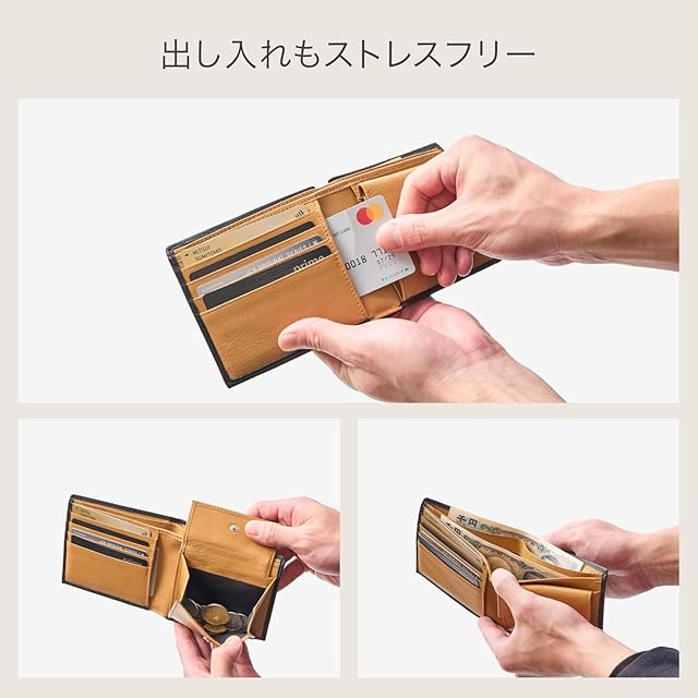 ✅【こだわりの使いやすさ】小銭入れはガバっと開き中が見やすく取り出しやすい設計。札入れには仕切りがあるのでレシートなども分けて収納可能です。カード入れ部分は幅・深さなど数ミリ単位でこだわり出し入れのしやすさを徹底的に追求しました。
