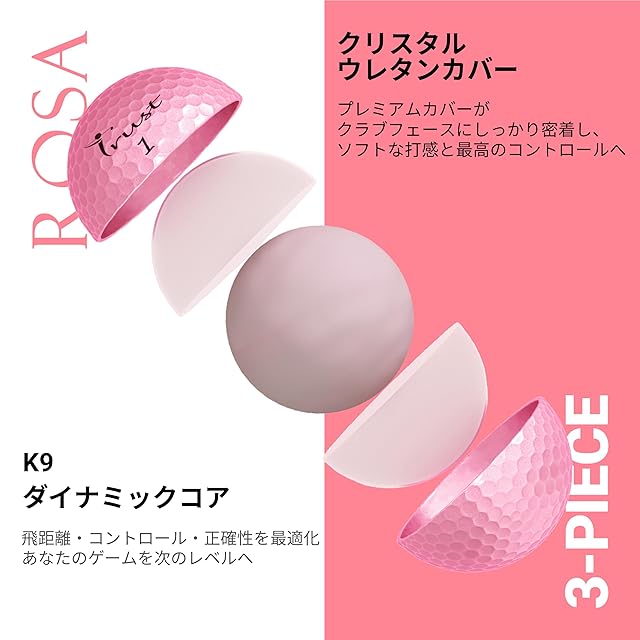 TrustトラストゴルフボールNew Rosa(ローサ) 被らない 目立つ 飛ぶ 曲がらない 止まる 柔らかい打感 ウレタンカバー3ピースダイナミックコア 4ダース(48個入り) ゴールドピンク