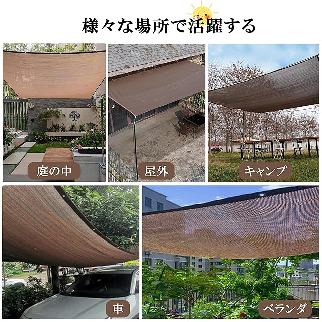【製品仕様】遮光ネットのサイズ:5m×6m;色:コーヒー色;耐久性に優れた高密度なポリエチレンを使用した日よけシェードです。