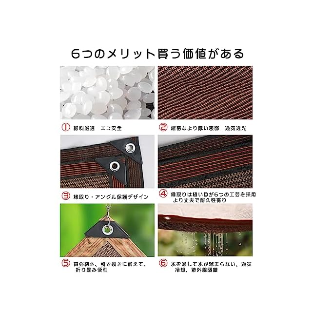 MASTORE 遮光ネット 6x6m サンシェード ベランダ 高密度ポリエチレン 日除け オーニング シェード UVカット 取り付けも簡単 バルコニー カーテン 庭 フェンス 日除けも風通しも両立 (コーヒー色)