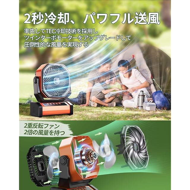 【頑丈な材質・切タイマー機能】このキャンプ 扇風機は頑丈で耐久性のある構造を採用し、落下や衝突を防ぐことができ、頑丈な台座は強力な安定性を提供し、サーキュレーターをしっかり固定させる。この扇風機は、あずまや、庭、キャンプ、遠足、ピクニック、釣り、ボートなどのアウトドア扇風機に最適です。素晴らしいキャンプの必需品、テントのキャンプ扇風機。室内での使用、学習、仕事、読書などにも適しています。※また、消し忘れ防止に切タイマー機能で、1・2・4・8時間が設定できます。就寝中の身体お冷やしすぎを防ぎます。USB充電式かつ20,000大容量バッテリーが内蔵、外出時でも長時間使用できます。