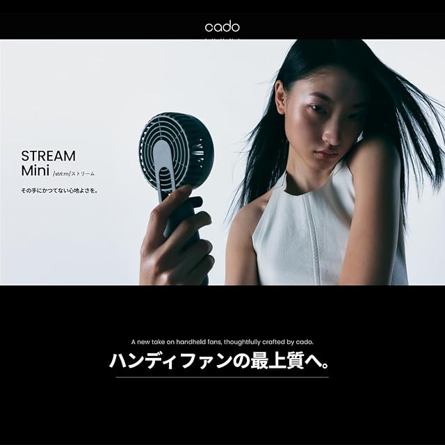 cado ハンディファン STREAM Mini TB ストラップ(S)付き PD急速充電 4段階調整 小型 携帯扇風機 ポータブル 冷却力 ポーチ付き 【公式ストア限定】