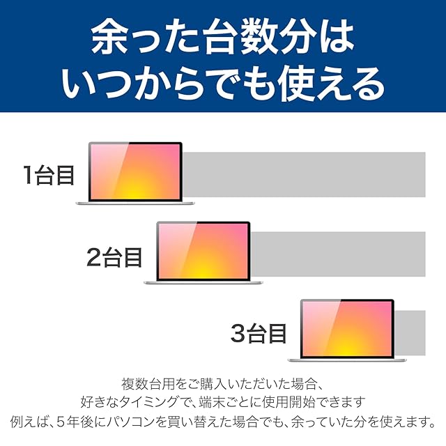 ポイント1:入れた1台を最後まで守る、期限なしのウイルス対策ソフト。インストールした端末が壊れたり、OSのシステム要件を満たさなくなるまで使え、追加費用がかかりません。本製品はWindows専用版の5台用です。
