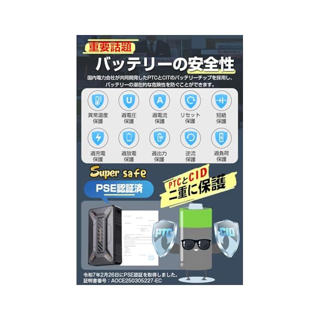 【Super Safe!安心のPSEマーク·40500mAh大容量バッテリー】バッテリーはすでにPSEの認可を得ており、PTCとCITの2重チップを内蔵しており、過熱保護、過電流保護、過負荷保護、短絡保護、過充電保護、自動回復などの特徴があり、他社のように火災のリスクはありません。昨年とは異なり、バッテリーのチップは国内の電力会社が共同開発した最新の成果を採用し、バッテリーの重量が変わらない状況で、バッテリー容量は40500mAhに大幅に向上した。実験室の6カ月間の限界負荷試験によれば、耐久性は信頼できる。「自動モード」の使用時間は約9時間、「42V」風力は約5時間、「38V」風力は約6時間、「34V」風力は約7.5時間、「30V」風力は約10時間、「26V」風力は約13時間、「22V」風力は約21.5時間、「20V」風力は約26時間で、従来の使用時間に比べて大幅にアップしました!専用のアダプターは約5時間で、バッテリーを100%にすることができます。バッテリーの証明書番号:AOCE250305227-EC。アダプターの証明書番号:JD50565692。