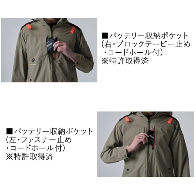 ■バッテリー収納ポケット(右・ブロックテービー止め ・コードホール付) ※特許取得済