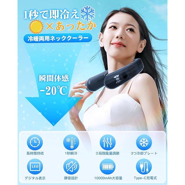 商品名:Azidxu ネッククーラー 首掛け扇風機 ネックファン 【2025最強進化上下送風】 風量3段階調節 3つの冷却プレート搭載 ネッククーラー 冷却プレート Type-C充電 10000mAh大容量バッテリー 最大24時間連続使用可能 冬夏兼用 LEDディスプレイ表示 熱中症対策 スポーツ観戦 遠足 自宅 アウトドア 山登り 工事現場 通勤通学 釣り 夏の暑さ対策に最適 (ブルー)