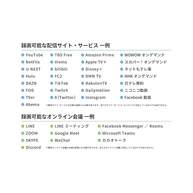 利用例) 再生中の動画、Web動画、ストリーミング生放送、プレゼン、ゲーム実況、LINE/Skype等のTV電話、外部接続カメラ/マイクからの録画録音 等々