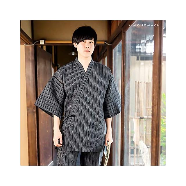 [KIMONOMACHI] [ 京都きもの町 オリジナル メンズ 甚平 黒白縞 綿麻甚平 3Lサイズ 父の日 ギフト プレゼント 部屋着 ルームウェア 大きいサイズ