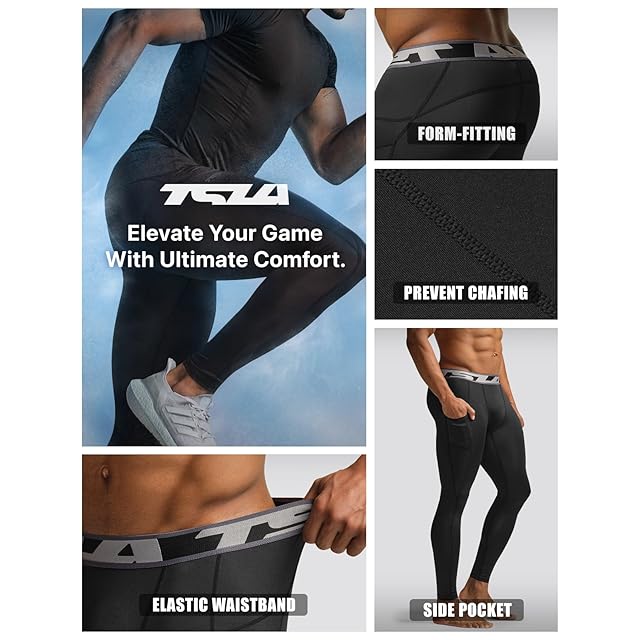 [テスラ] コンプレッションレギンス メンズ ポケット付き 2枚セット [吸汗速乾・UVカット・ストレッチ性] アンダーウェア ロング丈 スポーツインナー MUP94-ABK_2XL