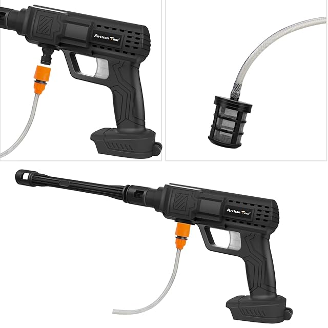 アルチザンツール 【日本ブランド】自吸式高圧洗浄機HP-02 黒 コードレス マキタ18Vバッテリーに使用 ONスイッチ固定機能 水圧強化 吐出水量UP 収納ケースの最小軽量化 水吸上げ部品改良 洗車機 強力噴射 電動工具 軽量 コンセント不要 愛車 庭 窓 階段 外壁など マキタ互換品
