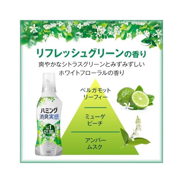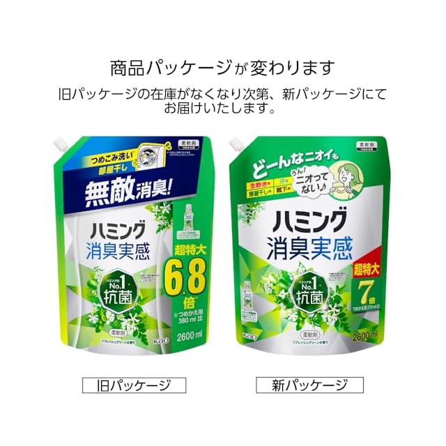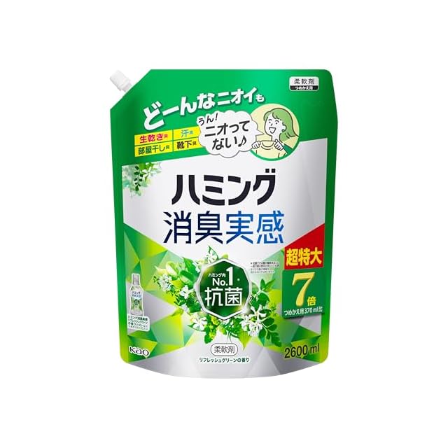ハミング 【大容量】消臭実感 柔軟剤 つめこみ洗いも、部屋干しも、無敵消臭! 内No.1抗菌 リフレッシュグリーンの香り つめかえ用 2,600ml