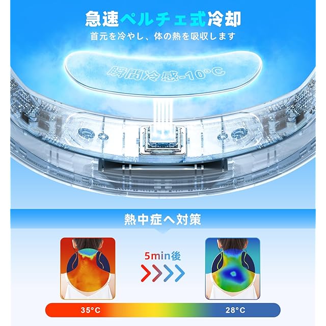 【ペルチェ素子・冷却プレート付き*】スイッチを入れたらわずか2秒で冷たくなるため、すぐに涼みたい方におすすめ。体感温度-17度の冷えた缶ジュースのような感覚が楽しめる首かけ扇風機 。冷却機能と送風の機能はお好きの快適なレベルを組み合わせ可能です!