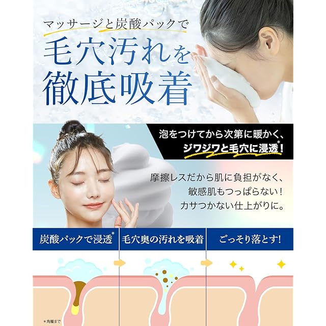 ?【すっぴん輝くハリ肌へ!濃密炭酸泡で1本3役の贅沢トリートメント】マシュマロ級のもっちり弾力泡を実現。泡洗顔 炭酸パック マッサージの3機能を併せた 炭酸洗顔 炭とクレイ配合で 毛穴 の黒ずみまでオフ、使うたびスペシャルな透明美肌(※)へ。(※汚れを落とすことによる)