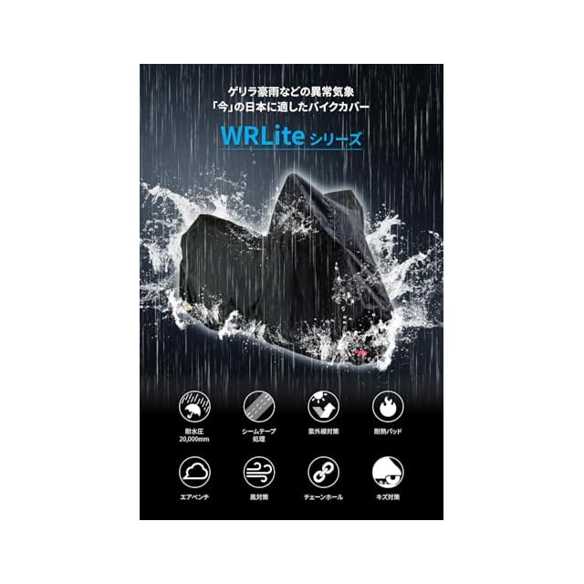 黒い繊維だからこそ実現できた、雨に打ち勝つ高耐久・耐水性の特殊素材生地を開発。脅威の耐水圧20,000mmの生地を使用した雨に強いバイクカバー