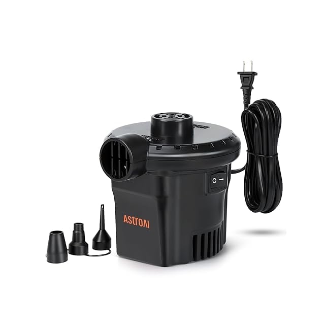 AstroAI 空気入れ プール AC電源/DC電源/充電式バッテリー給電 tiny pump 電動エアーポンプ タイニー ポンプ 空気抜き 両対応 3種類のノズル付き PSE認証済み 小型浮き輪 ゴムボート エアベット ビニール ブール適用
