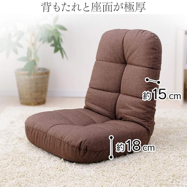 アイリスプラザ 座椅子 リクライニング ポケットコイル 折りたたみ収納 ふわふわ スチール, ポリエステル ブラウン 60×60×65.5cm POZ-36