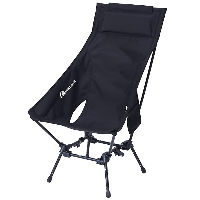 MOON LENCE アウトドアチェア ハイバック 四段階高さ調節 キャンプ 椅子 あぐらチェア グランドチェア 折りたたみ 軽量 コンパクト 枕付き 耐荷重180kg ブラック