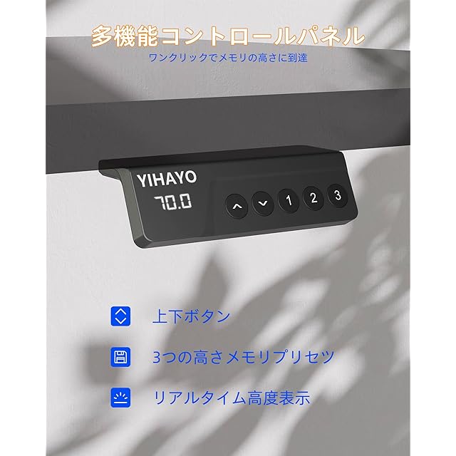 【ワンタッチで座り方と立ち方が切り替える】YIHAYO スタンディングデスクの高さは70 ~118 cmで自由に調整できます。子どもから大人まで、身長や姿勢に合わせて設置できます。また、メモリー機能があり、最大3つの高さを保存できるので、ワンタッチで座り方と立ち方を切り替えて、好きな高さに調整することができます