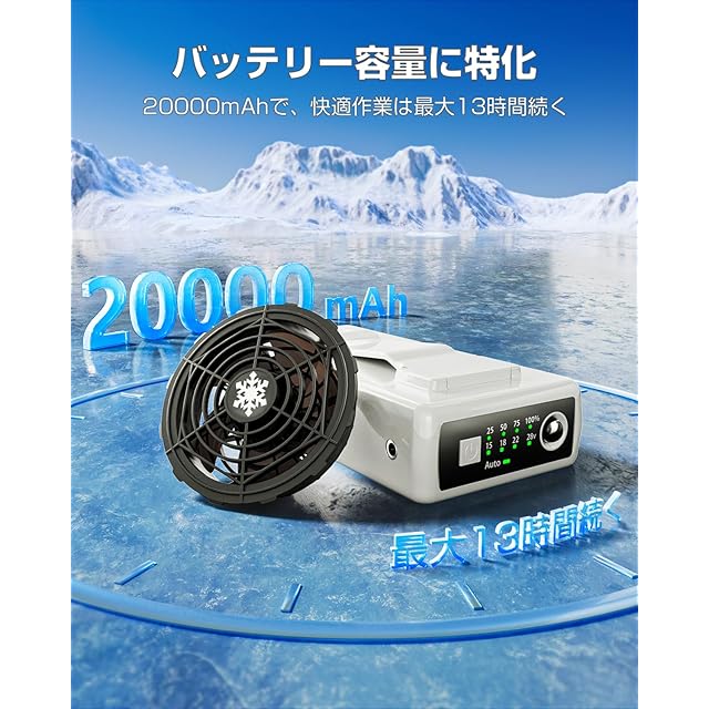 ?【無双 - 大容量バッテリー】20,000mAhの高品質バッテリーで、一日中のアウトドア活動も安心。バッテリー切れの心配なく、野外での楽しみや探索を存分に享受できます。この空調服と共に、自然の美しさをもっと自由に、もっと長く。