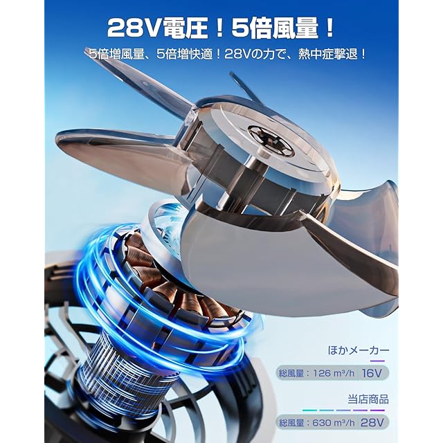 ?【無双 - 28V電圧出力】自然の中でも快適さを追求、28Vの力で風量アップ、熱中症から守ります!出力電圧MAXで、冒険もMAX!涼しさもMAXに!28Vの高出力で、より強力な風を実現しました。アウトドアの厳しい環境下でも、冒険を快適に楽しむことができます。パッケージ内容:服*1、ファン*2、バッテリー*1