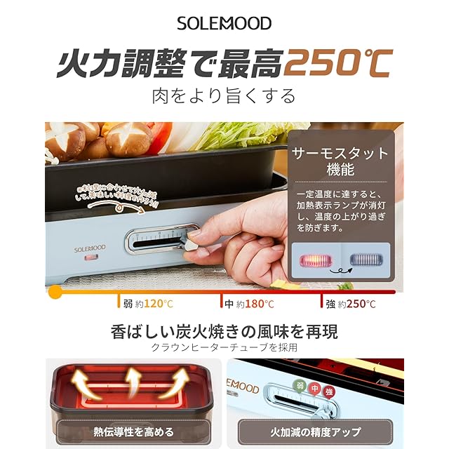 【最高250℃まで調整可能・お手入れ楽々♪】着脱式なプレートで、取り外し便利です。焦げ付き汚れもつるんと落とせる洗いやすい2層フッ素加工プレートで、水洗いでお手入れも簡単です。