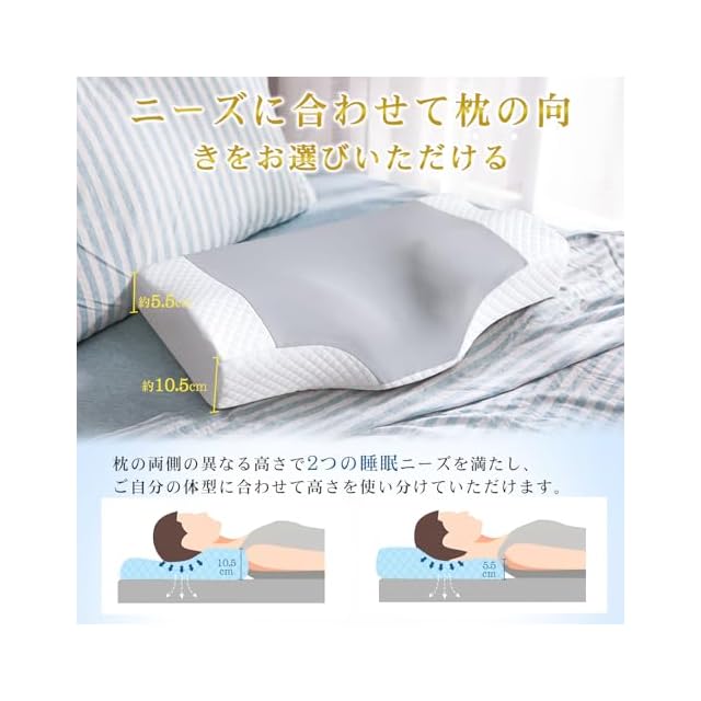 【好みの高さ選択可能】個人差により5.5cmと10.5cm二段階の高さを設計して、枕の向きを変えるだけで、お好みの高さを選択できます。低めの枕がお好みの方でも高めの枕がお好みの方でも、弊店の枕はお客様のニーズにお応えします。