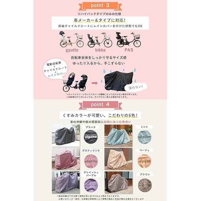 【くすみカラー6色】sopota 自転車カバー 子供乗せ 防水 厚手 250D 横開き おしゃれ ソポタ SOP-MCO (ハイバック / グレイッシュパープル)