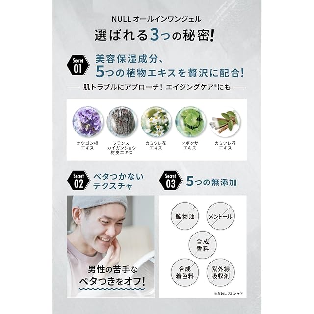 NULLフェイスウォッシュと合わせて使用いただくとより効果を実感することができます。【こんなお悩みをお持ちの方へ】 忙しいビジネスマン スキンケアをしたい30代?50代の男性、初めてスキンケアをする10代?20代の男性 オイリー肌 敏感肌 脂性肌 【こんな製品をお探しの方へ】■メンズ用のオールインワンジェル 化粧水 美容液 乳液 クリーム フェイスパック 保湿ジェル エイジングケア ローション ニキビ 肌荒れ 乾燥肌 ローション オールインワンゲル シカ ポンプ メンズコスメ 毛穴 シカクリーム