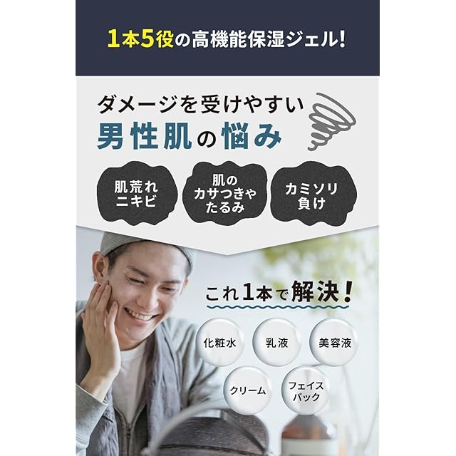 【お得な2本セットが登場!】朝晩の時短8秒スキンケア!「SNS総フォローワー150万人以上!なーすけくん愛用」。たった1本で、できる男の肌に。スキンケア初心者にも使いやすい化粧水、乳液、美容液、クリーム、フェイスパックの1本5役のメンズ向けのオールインワンジェル。洗顔後の保湿ジェルや髭剃り後のアフターシェーブローションとしてお使い頂けます。