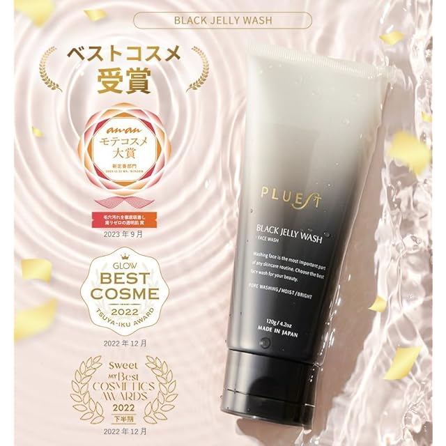 PLUEST ブラックジェリーウォッシュ 120g 洗顔 毛穴 ピーリング 無添加 炭 保湿 脂性肌 界面活性剤不使用 ノンコメドジェニック 使い方ガイド付き