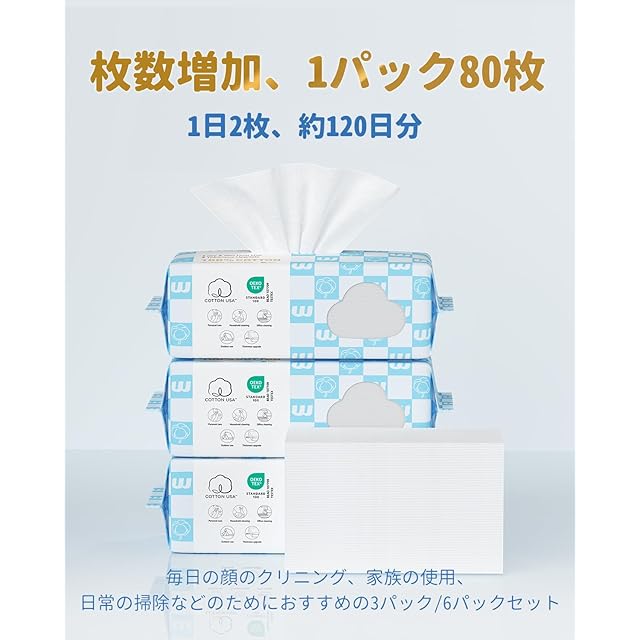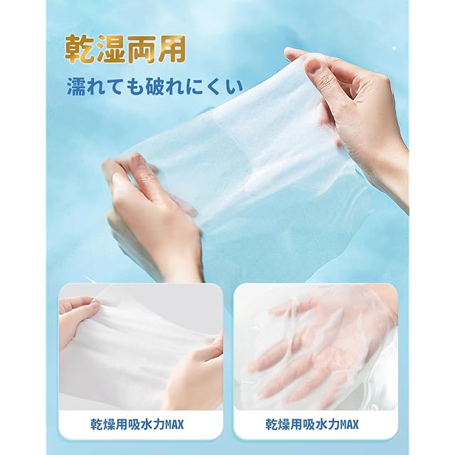 【全棉!衛生的・エコ・ソフト・丈夫】使い捨てタオルは毎回新品の状態で使用できるため衛生的!平滑面の仕様は拭き取る際の摩擦を減らして、肌が赤くなるのを防ぎます。スパンレースの技術で編む特殊な製法を採用、水に濡らしても破れにくいクレンジングタオルです。