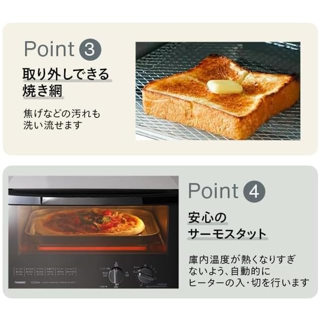 【メニューや食材で使い分けられる。】トースト以外も美味しく。 庫内には小さめの食材もしっかりキャッチするクロス網を採用しているのもポイント。トースト以外にも、切りもちやロールパンのあたためにも活躍。お餅などにはきれいな焼き目をつけることもでき、天板付きで20cmまでの冷凍ピザも焼き上げることができます。