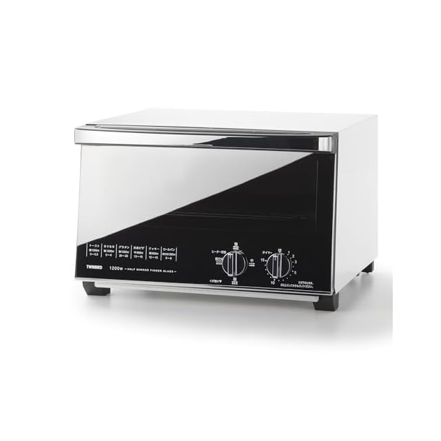 ツインバード オーブントースター 4枚焼き ピザ丸々入る広さ 1200W 15分タイマー 出力切替4段階 ミラーガラス 掃除しやすい ホワイト TS-4047W