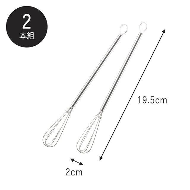 下村企販 泡立て器 ミニ 2本組 19.5cm 【日本製】 食洗器対応 少量の泡立てに 小さな容器でも混ぜやすい ドレッシング作り 溶き卵 水溶き片栗粉 納豆 頑丈 小 ホイッパー ウィスク ステンレス 製菓 お菓子作り 34564