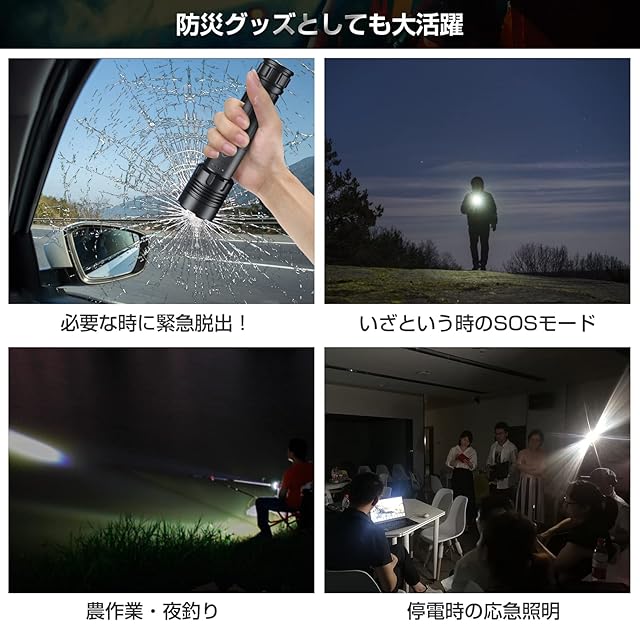 【防災セットの必需品!】地震や台風などの災害で万が一停電になったとしてもこのLEDハンディライトがあれば、防犯や避難時に役立ちます。夜間の移動やウォーキング・花火の時期・サイクリング・登山・夜釣り・夜間訓練・キャンプなどのアウトドア・昆虫採集など、様々な場面で便利にご使用頂けます。