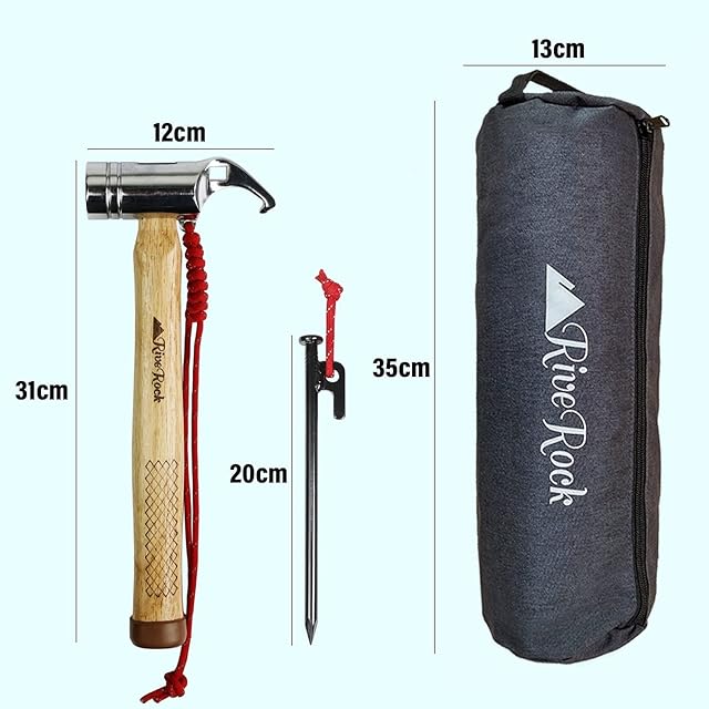 RiveRock(リバロック) ペグハンマー 収納袋 安全キャップ付き ペグ10本 夜光ロープ 強靭 (ハンマー+ペグ10本+収納バック/レッド)