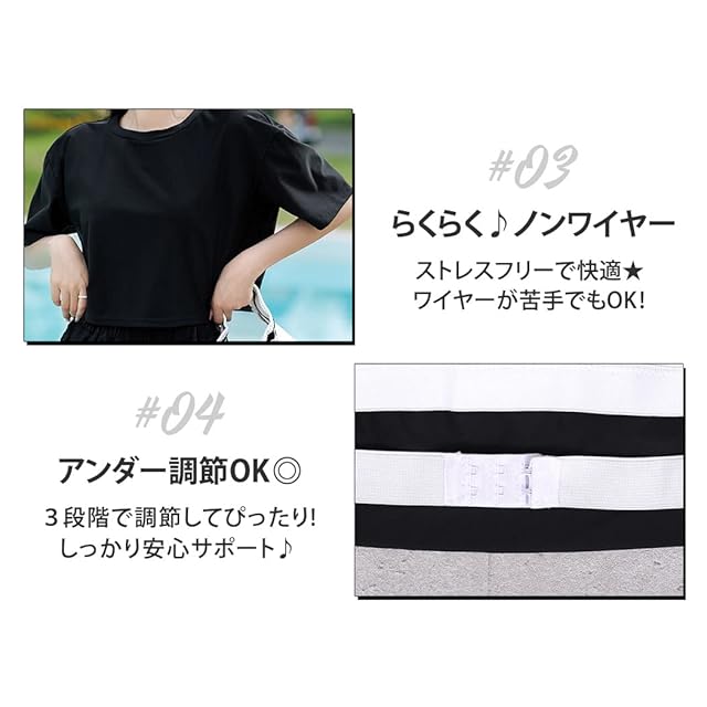 #03らくらく♪ノンワイヤー ストレスフリーで快適★ワイヤーが苦手でもOK!#04アンダー調節OK◎ 3段階で調節してぴったり!しっかり安心サポート♪