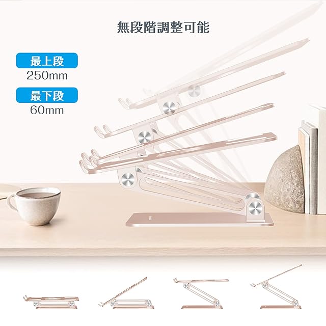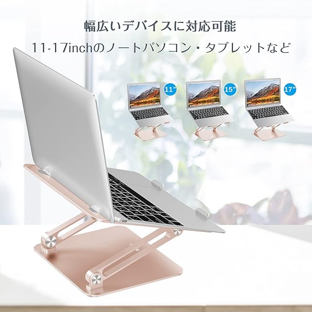 BoYata ノートパソコンスタンド pc スタンド タブレット 無段階高さ/角度調整可能 姿勢改善 腰痛/猫背解消 安定性 折りたたみ式 アルミ合金製 17インチ以下のデバイスに対応 シャンパンゴールド