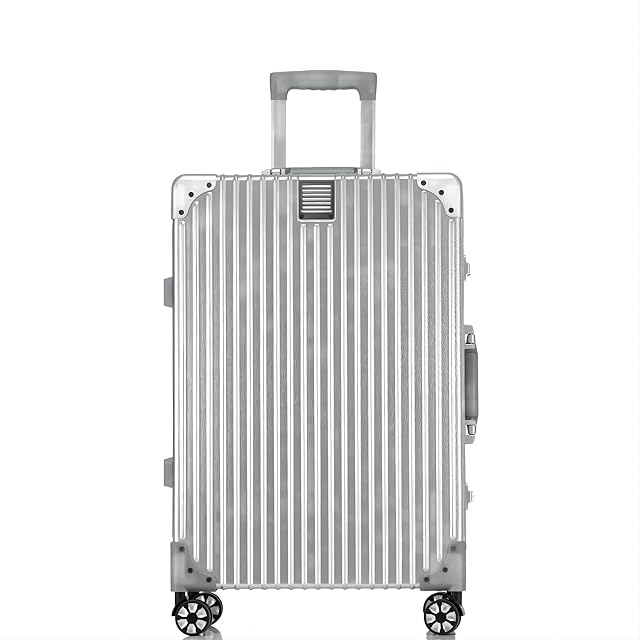 【全アルミニウム合金ボディ+アルミニウムフレーム】 このキャリーオンラゲージは、全アルミニウム合金ボディとアルミニウムフレームを備えており、洗練されたクールな外観を持っています。金属素材により強度と耐久性が確保され、長寿命を実現しています。金属のボディが高級感を演出し、優れた選択肢となります。有名ブランドの製品と比較すると、数倍もの価格差がありながら、丈夫で軽量であるという点で優れています。