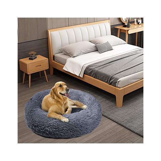 Aurako 80cm 犬ベッド 猫ベッド ふわふわ 丸型 クッション ドーナツペットベッド ぐっすり眠る 猫用 小型犬用 もこもこ 暖かい 滑り止め 防寒 寒さ対策 洗濯可能 子犬 猫用 サイズ選択可 ダークグレー