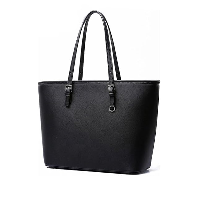 [Miwoluna] ミウォルナ ビジネスバッグ トートバッグ レディース リクルート A4 PUレザー (ブラック ロゴ無し 金具:ブラック)