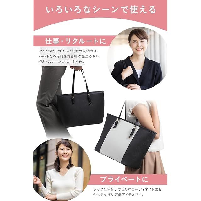 【ビジネスにプライベートに】 ビジネスバッグとして、リクルートバッグや就活バッグとして、さらにプライベートでのご使用も可能なマルチなデザイン。シックで高級感のあるフォルム、年代を問わずマッチするデザイン。多くなりがちな荷物も楽々収納。デザイン性、機能性にこだわったバッグです。