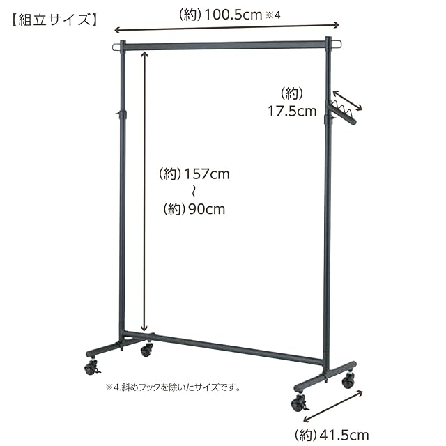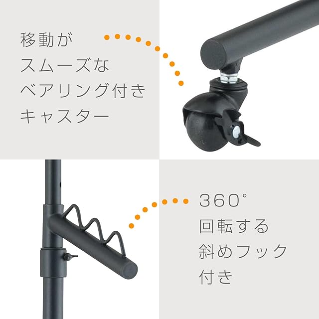 ドウシシャ ハンガーラック 耐荷重85kg 頑丈 幅100cm シングル 黒 ブラック おしゃれ 可愛い LIHS-100BK 幅100×奥行42×高さ108?175cm キャスター付き 高さ上下伸縮式 斜めフック付き 室内干し パイプハンガー 洋服掛け 業務用
