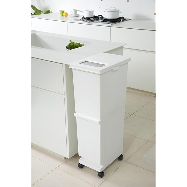 新輝合成(Shinki Gosei) トンボ ユニード ゴミ箱 2段 分別 蓋を開けずにごみを捨てられる スリム キャスター付 55リットル ホワイト 奥行41×横27×高さ87cm 蓋付き 日本製