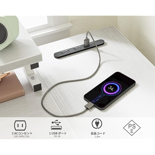 【コンセント付きデスク】パソコンやスマホなどの充電ができて超便利です。デスクの足元には一体型のラックが備え、本や書類などを使いたい時にサッと取り出せます。また、L字型のデザインで部屋のコーナーを最大限に活用でき、ご家庭でもオフィスでも、日常の仕事に十分なスペースを確保できます。